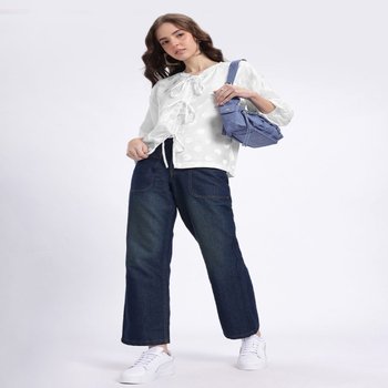 Hoge Kwaliteit Dames Top Polka Dot Design Stropdas-Hals Full Puff Mouw Korte Lengte Streetwear Geweven Stof Kant Knoop Decoratie